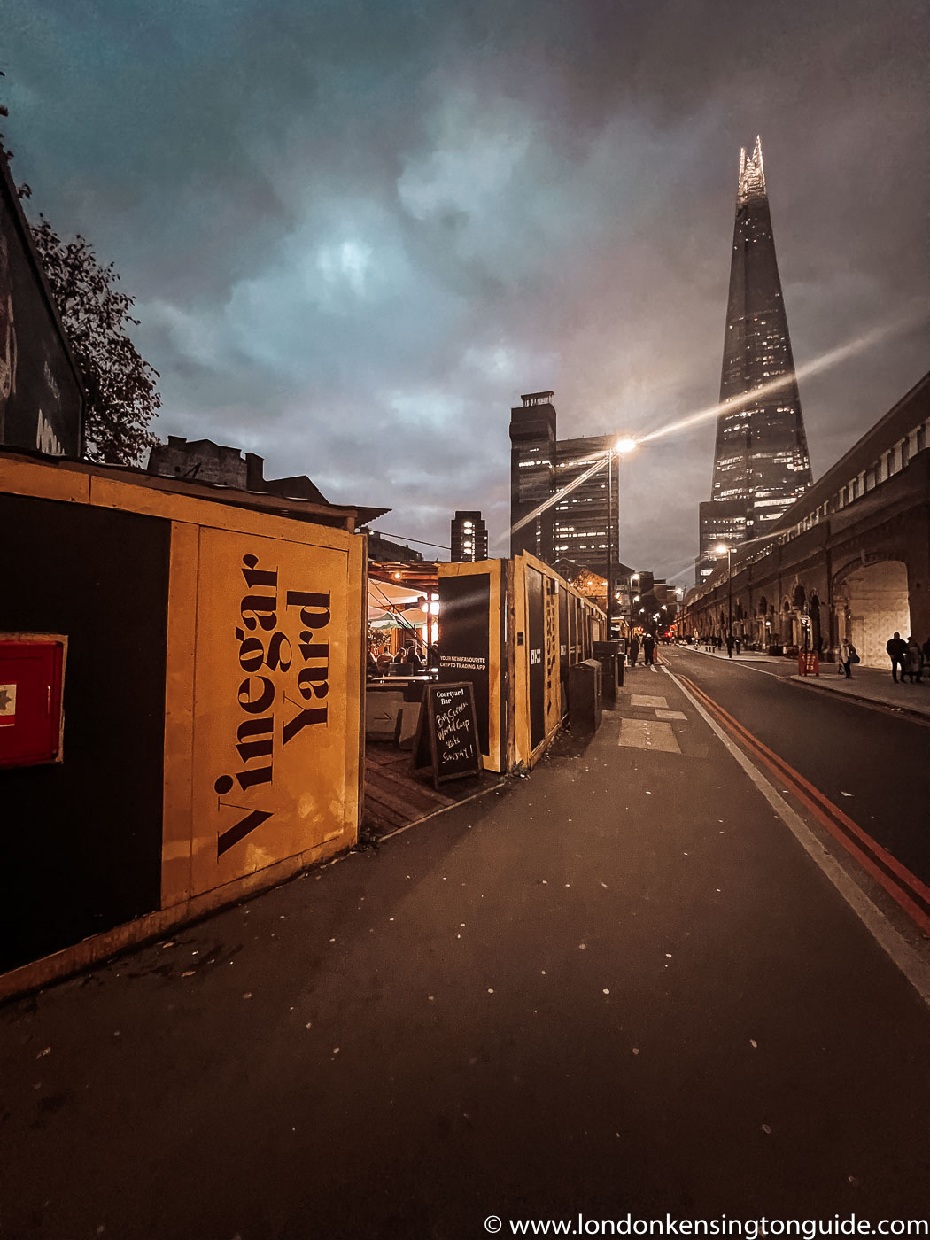 Vinegar Yard, just outside London Bridge station, is perfect for casual drinks, street food, and live DJs during the summer.